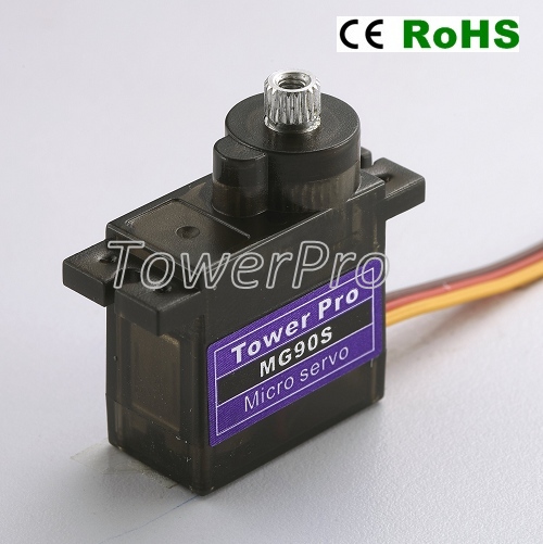 Oryginalne serwo TowerPro MG-90S, to serwo z metalowymi zębatkami, często stosowane do napędzania steru kierunku, gdzie występuje większe ryzyko uderzeń / drgań które mogły by uszkodzić tryby plastikowe.